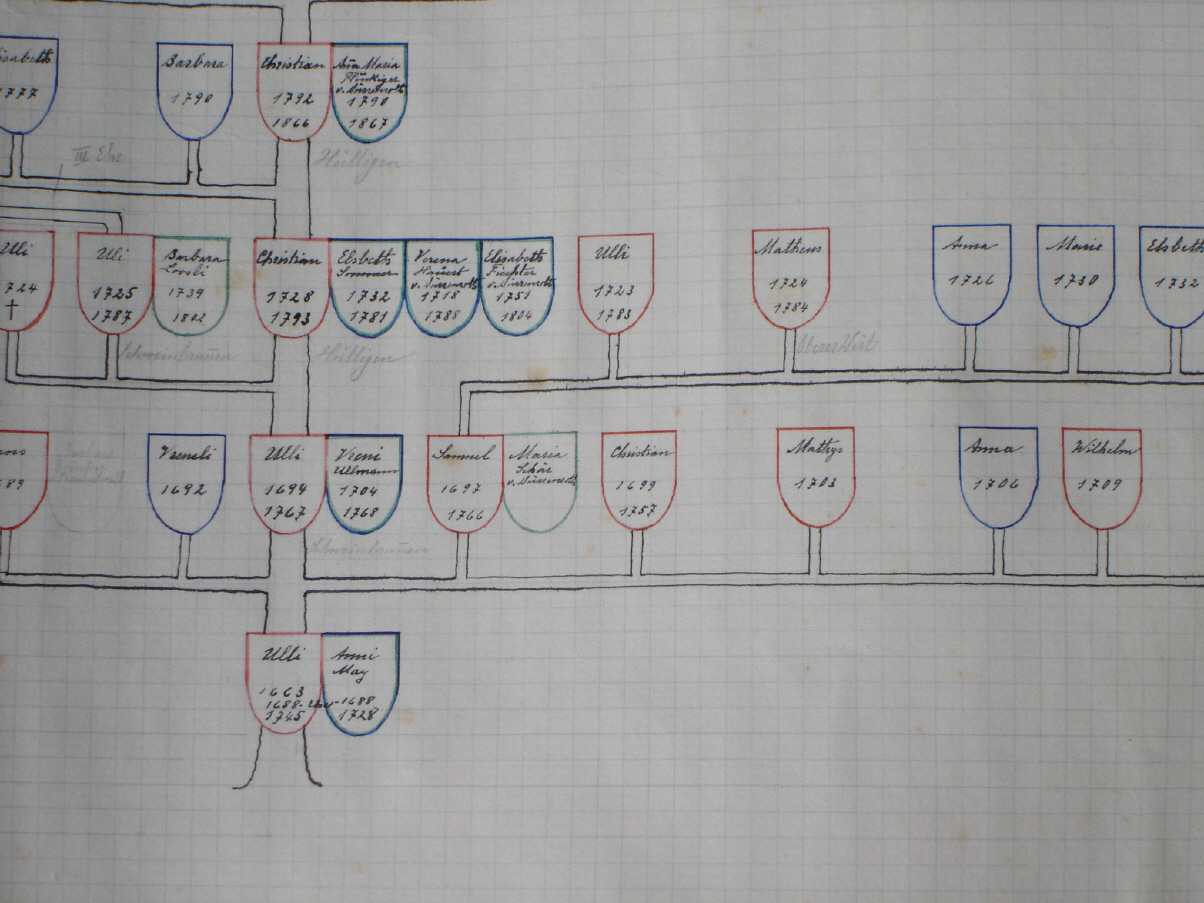 Dann wohnen die HESS seit Generationen auf dem gleichen Hof in Dürrenroth. Dadurch sind viele Dokumente erhalten geblieben. Zudem hat Hermann HESS bereits in früheren Jahren seinen Stammbaum erforscht. Auch diese Arbeit ist erhalten geblieben und hat mir bei meinen Nachforschungen viel genutzt.